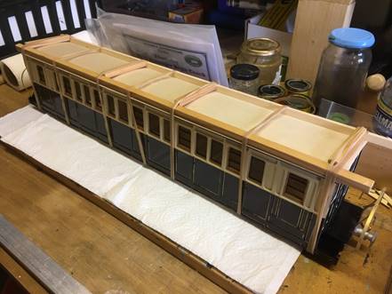 Lamp holders were added to the roof and the bogies fitted.
