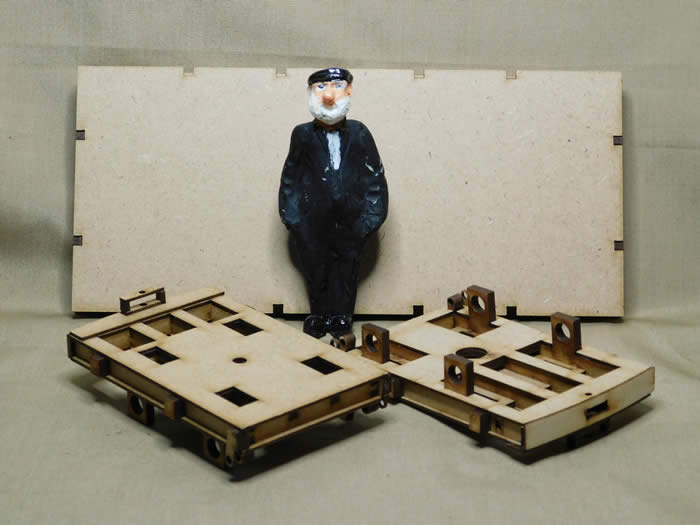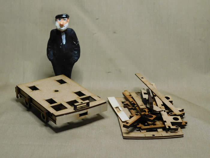 The kit went together easily, with all of the accurately cut wooden components fitting together without adjustment. The kit I built was in MDF but plywood is also available. MOD NGF wagons came in two lengths of flat bed, the Resurgam model is of the shorter variant from RAF Chilmark. The model can also be built to represent one of the Ffestiniog versions, or MODs as they are known there, with the end bulkheads removed along with the handbrake lever and rigging from one bogie. MODs are used on the Ffestiniog to transport permanent way materials, such as sleepers on a single flat bed wagon or in a combination of wagons to carry lengths of rail.