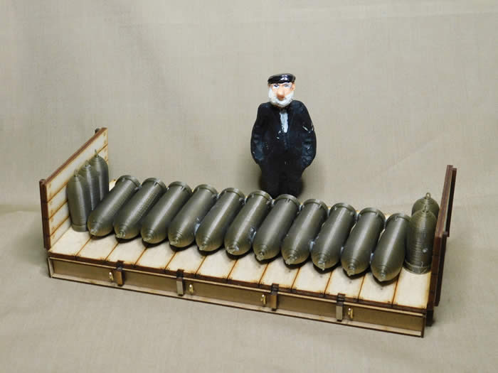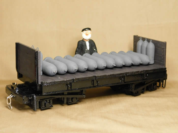 A prototypical load of RAF munitions, 3d printed for me by Roy Plum, was added to capture the character of the MOD NGF wagons as used at RAF Chilmark in the late 1980s.  The flat bed structure is surprisingly heavy but I nonetheless added a small amount of weight under the frame to aid stability. The finished model is robust and runs well with the Binnie disc wheels supplied with the kit. Whether you want to model MOD NGF wagons, or any of the Ffestiniog MOD wagons, this Resurgam Rolling Stock kit is worth a look.