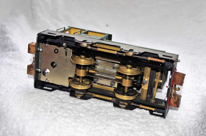 Again, I had no cab details but the open cab made detailing mandatory. Ron Redman’s book again provided similar cab pictures which gave inspiration. The cab details were made from brass sheet, sections and copper tubing. The control levers all move and the duplicated ones move together.