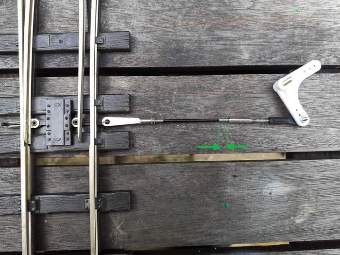 The point motor has a bracket mounting the cylinder with a tube to support the 2mm rod, bobbins on the rod adjust the throw and are actuated by a plate bolted to the piston rod.