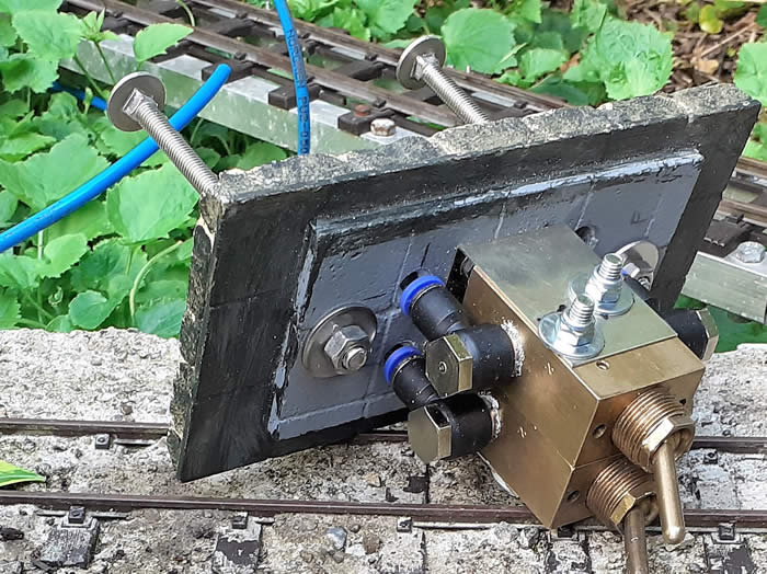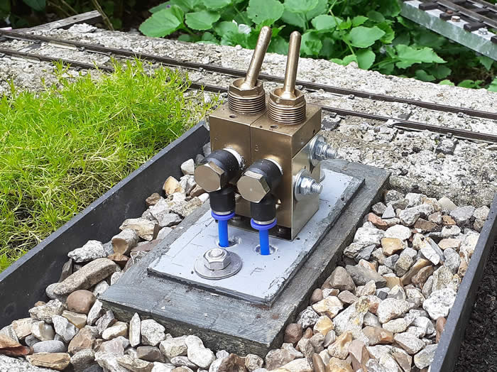 The switches are mounted by a bracket bolted to the base and the 4mm pipes come up through holes in the base and connect to the switches by 4mm push fit banjo fittings.