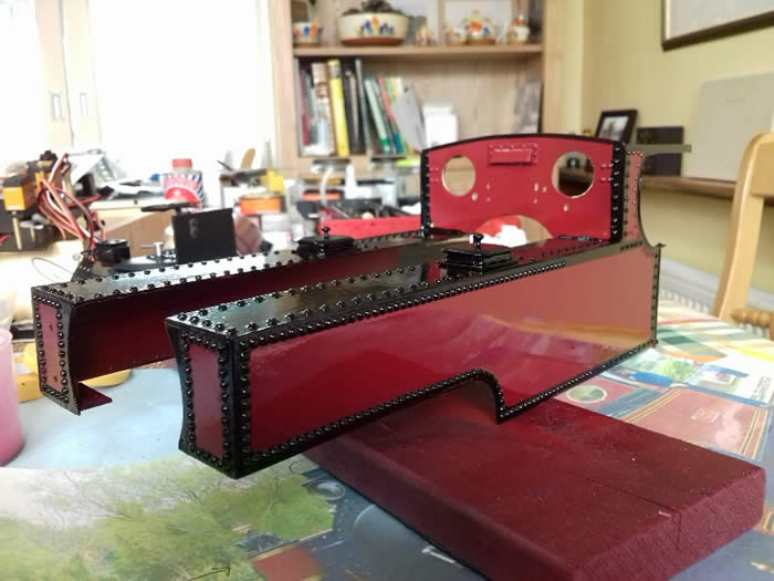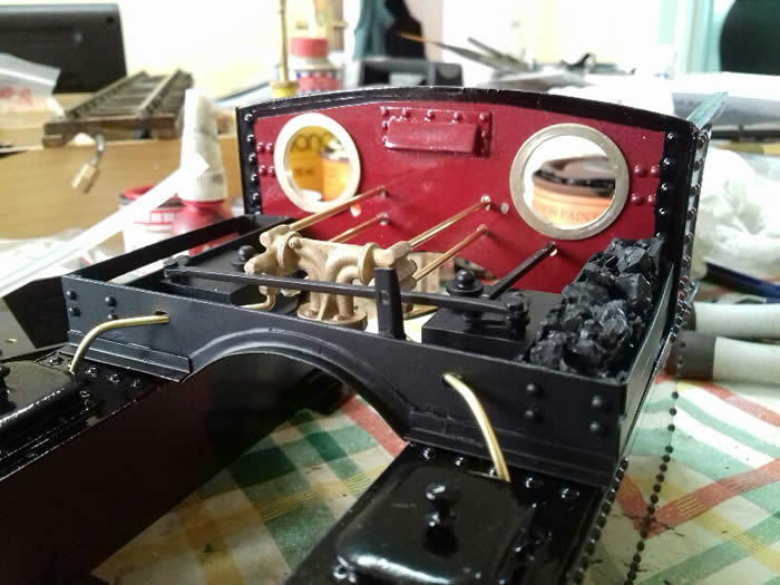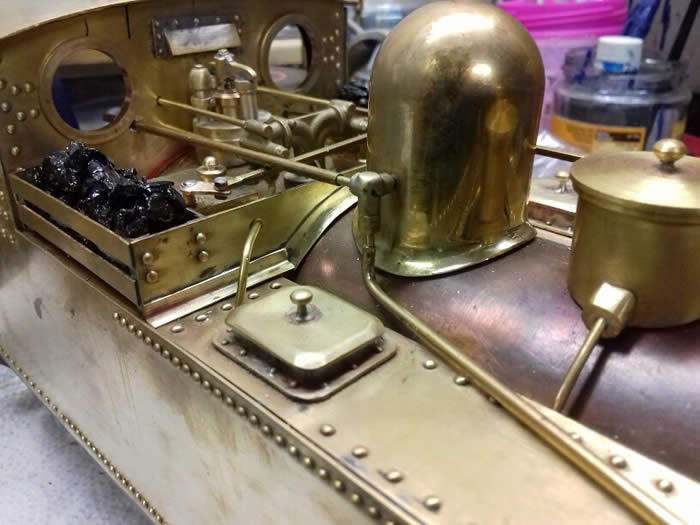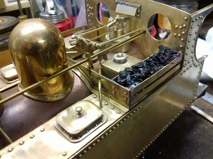 The coal bunkers were made and attach to the cab front sheet so that the whole assembly lifts off when the cab and tanks are removed.
