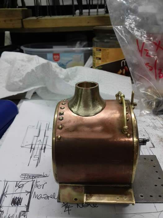 The smokebox was made out of a piece of 2.5inch copper with brass inserts to support the boiler and smokebox door.