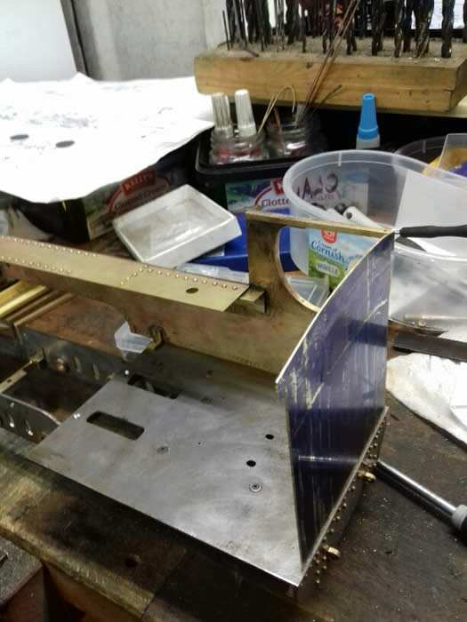 The tanks and cab front were made in one piece using milled angle for support. The angle was riveted to the tank tops then soft soldered to the sides.