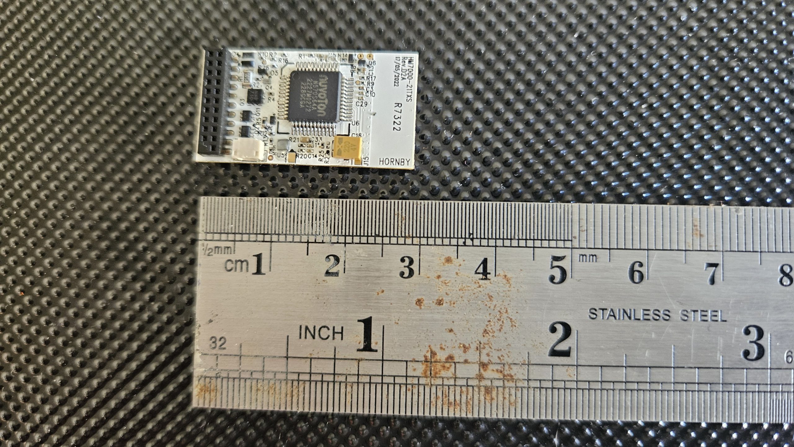 When it arrived, the first thing I noticed was how small the chip actually is. Photo 01 shows the chip alongside a ruler. They are tiny, and when you think that this one chip controls speed, direction, lights, sounds and (as they say) much, much more… it’s quite incredible.