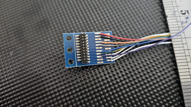 I also try to wire from the BA to the loco via a small multi-pin connector. This allows me to work on the electrical “gubbins” away from the loco and to connect it in place fairly easily when all the soldering is done (and tested!). When something doesn’t work as expected, it’s then an easy matter to remove the chip and BA from the loco to inspect it and fault find. Usually the fault is down to me soldering to the wrong pad on the BA or allowing solder to creep across to an adjacent pad. Both situations are to be avoided at all costs. Make an error and you’ll see a small amount of smoke rising from your expensive chip, after which nothing will work and the chip is for the bin. I have that Tee shirt.