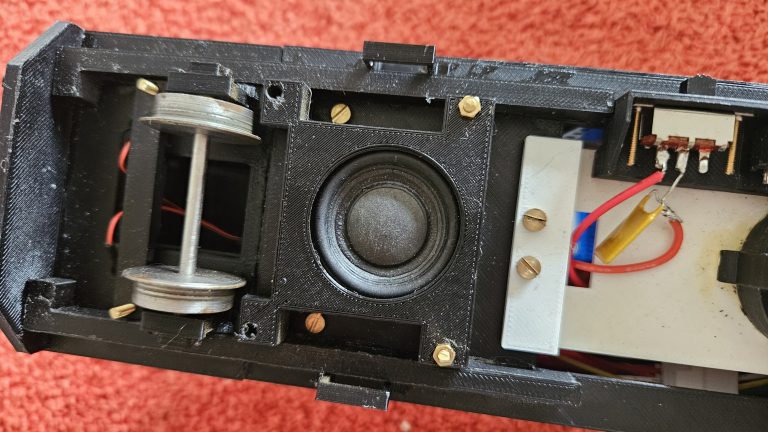 Hornby call the set of sounds and related actions appropriate for each loco a “Profile”, and there are a lot to choose from. Unfortunately, none are narrow gauge prototypes so you have to choose whatever you think best! I installed the profile for the BR Class 37 diesel in my railbus. I thought it sounded better than an Intercity 125.