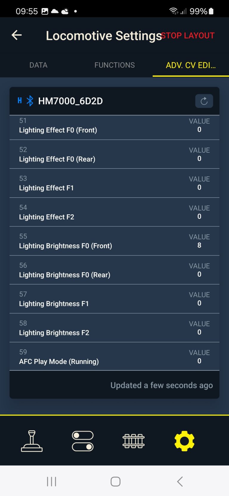 The only major issue I’ve found so far is that the HM7000 chip can only provide around 1000mA of power to the electric motor. This is 1 amp. For short bursts it can supply 1.5 amps. This should generally be enough for our locos, but if (like me) you have locos with 2 motors (say each powering its own bogie under a loco) you might easily go beyond what the DCC chip can handle and your loco will grind to a halt. You also get a warning in the App on your phone.