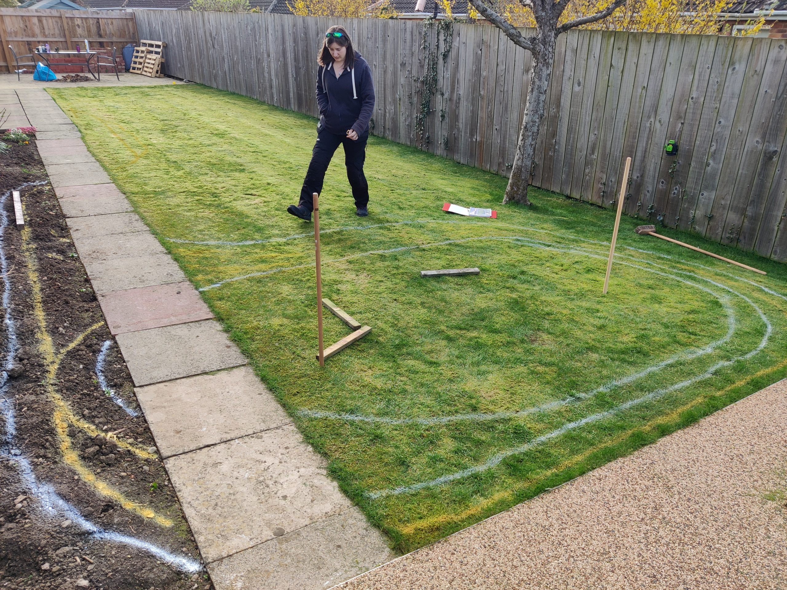We, of course, had a plan of what we wanted to achieve and anyone who knows me will know I have a plan for pretty much everything. We’d even drawn the line and walls out on the lawn with spray markers before we started digging. We didn’t really want to dig any more than needed.