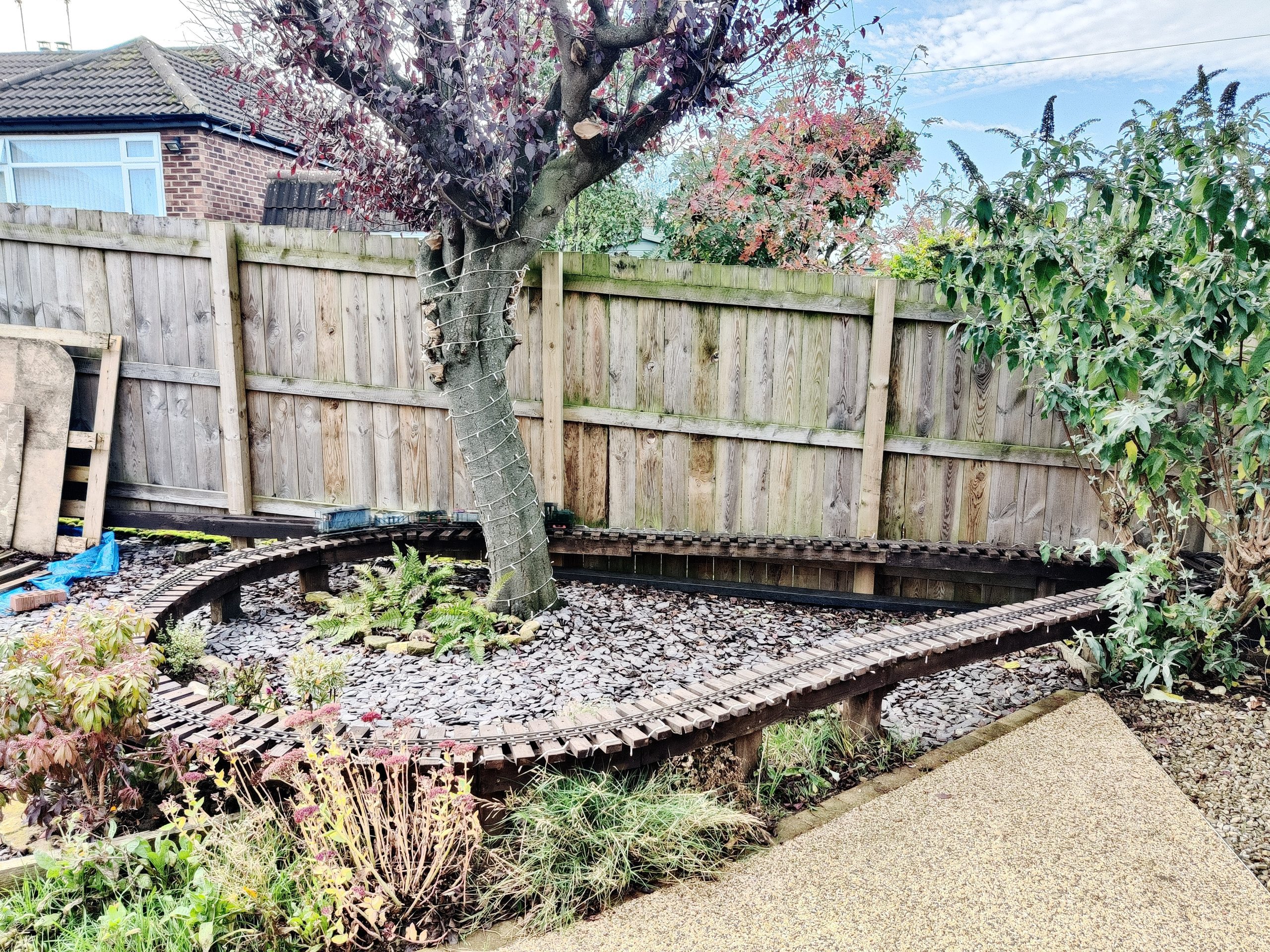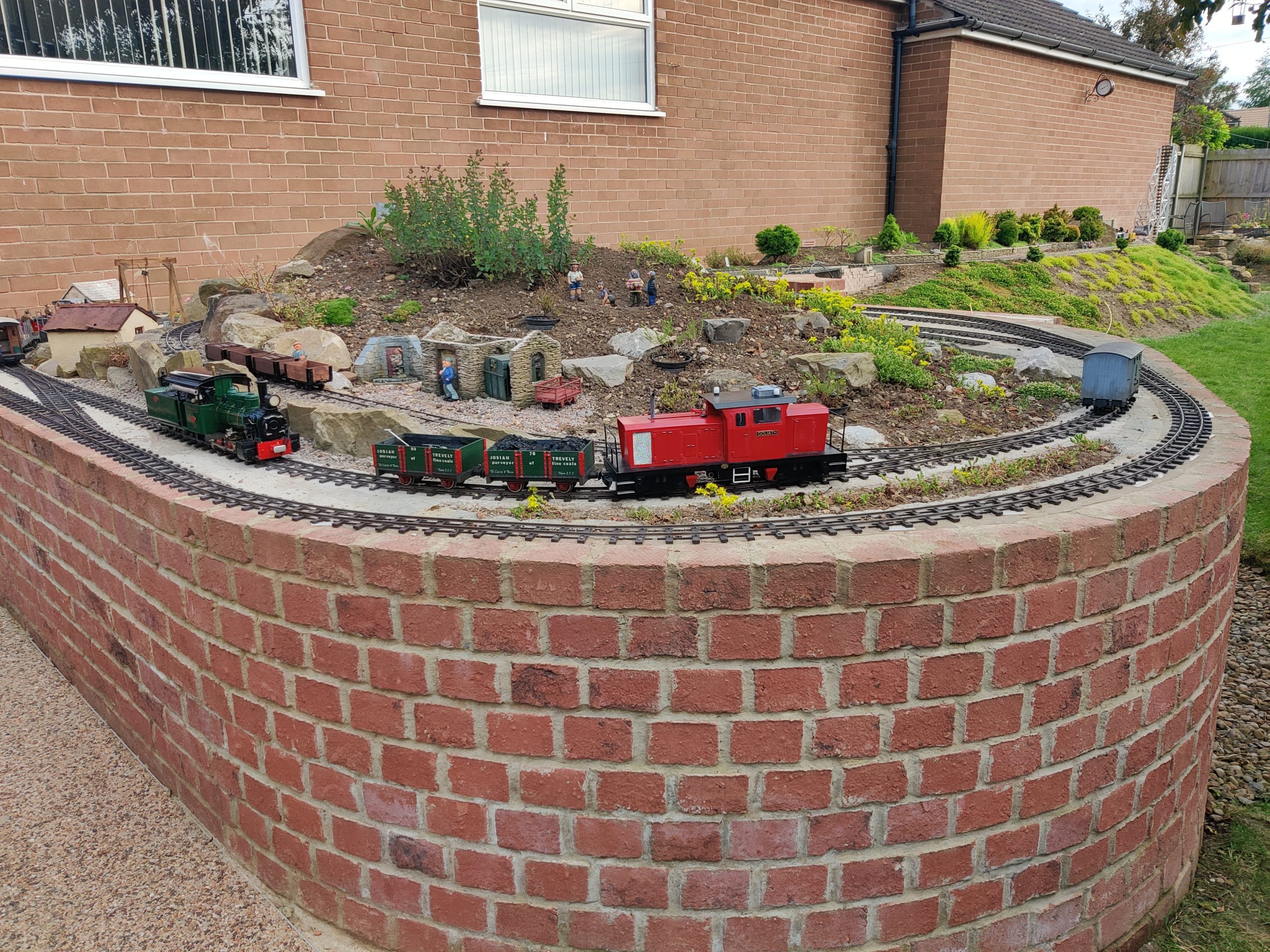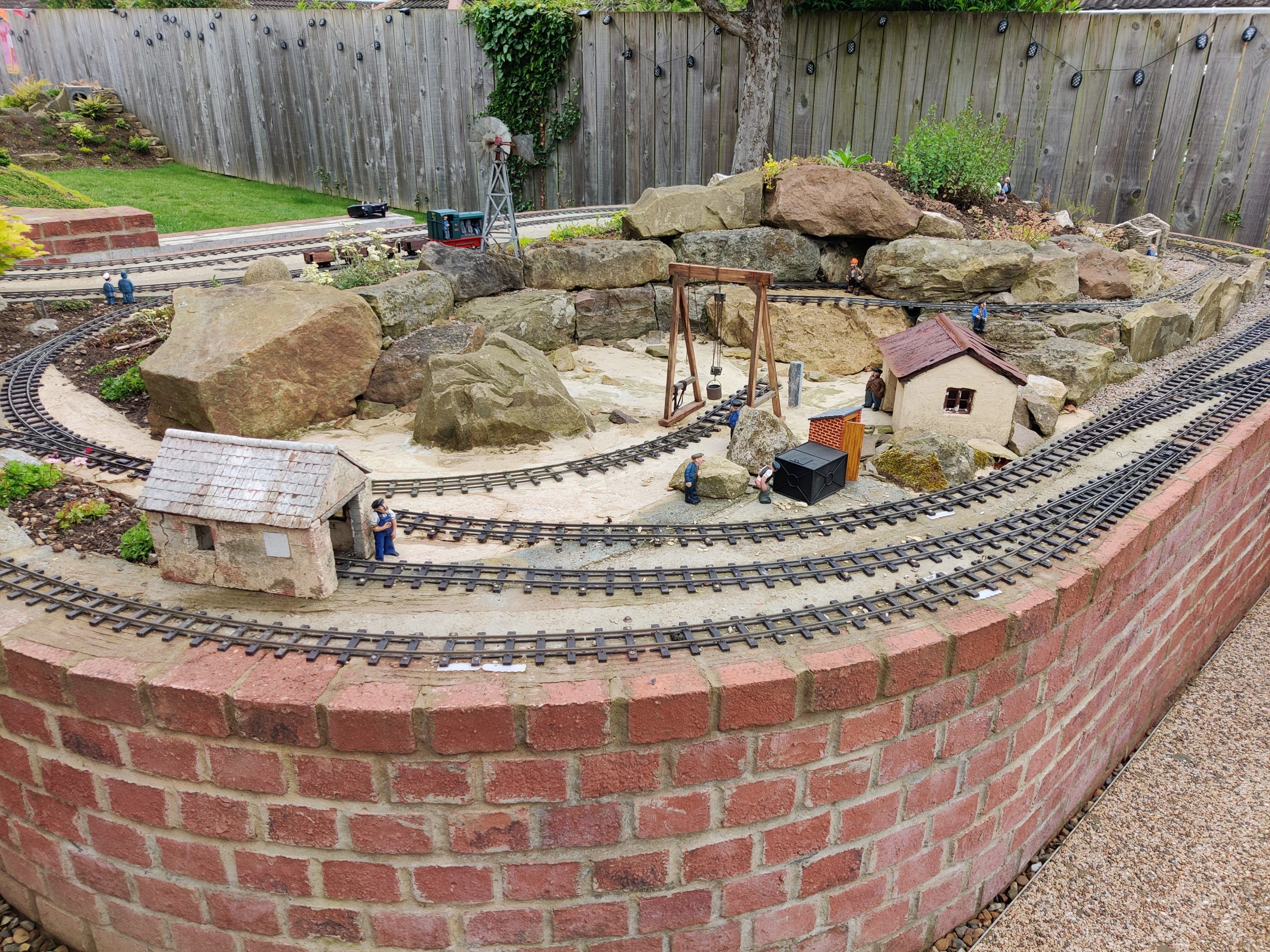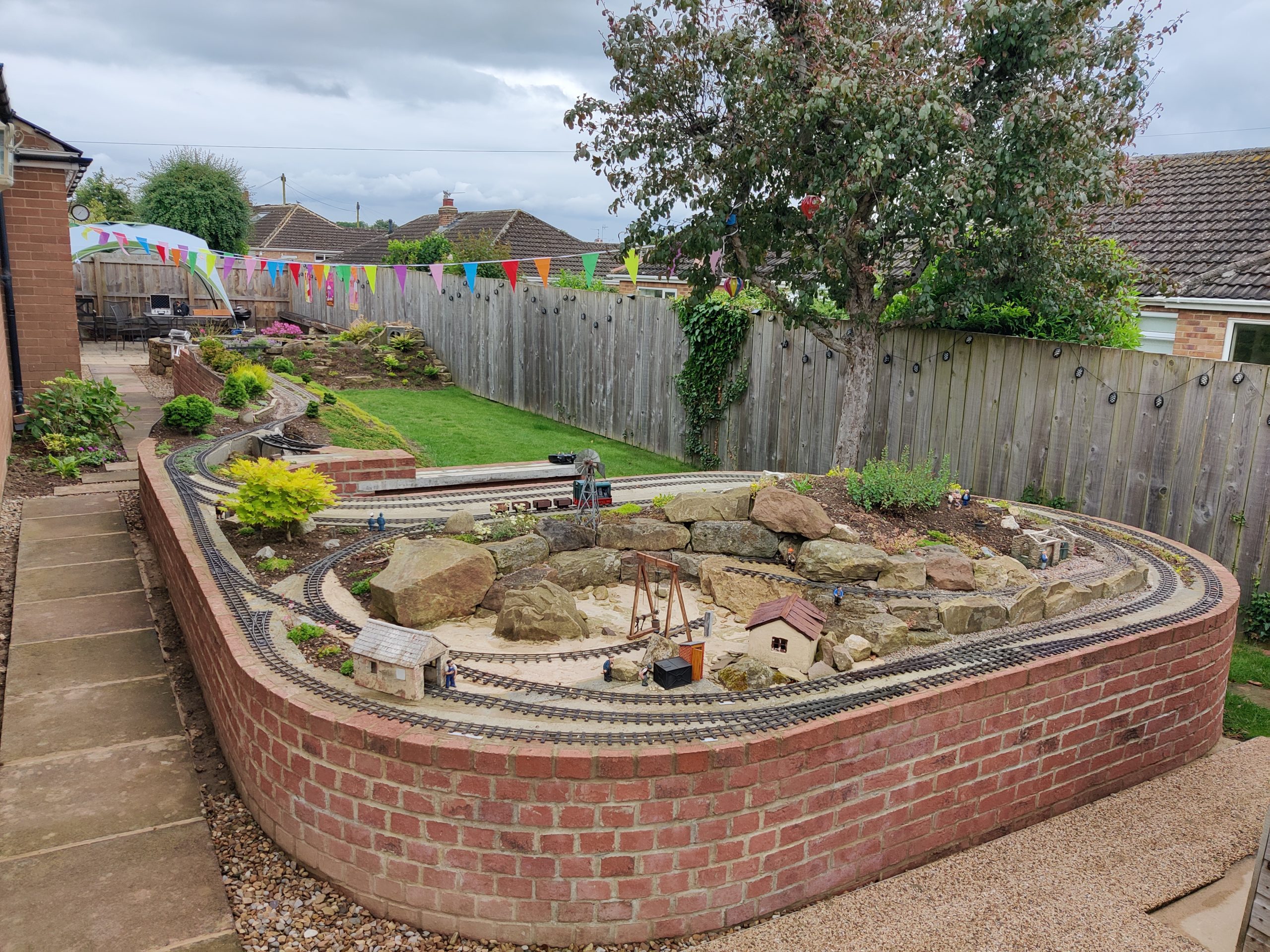 The ground sloping also allowed us to have a raised steam up area at a comfortable standing height, but not have to build high walls for the rest of the line down the garden.